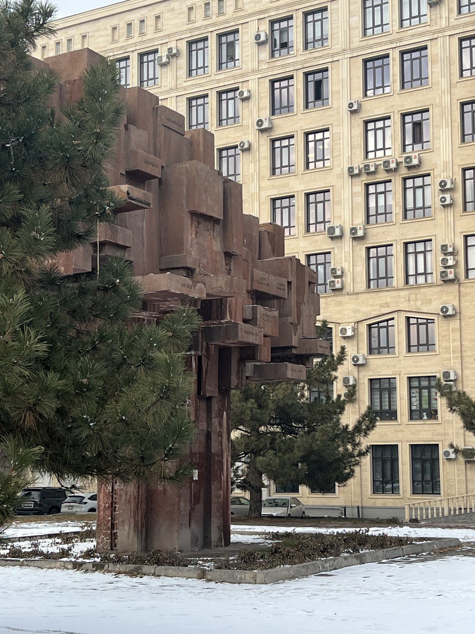 Город не создаёт ощущение большого или современного. Здесь нет небоскребов, да и современных построек не так много. В основном на улицах микс невысоких частных построек (как жилых, так и административных), отголосков Союза и несколько новых бизнес или торговых центров. В итоге город кажется очень разношёрстным – особенно после Астаны в глаза бросается точечная застройка, по крайней мере в центре.