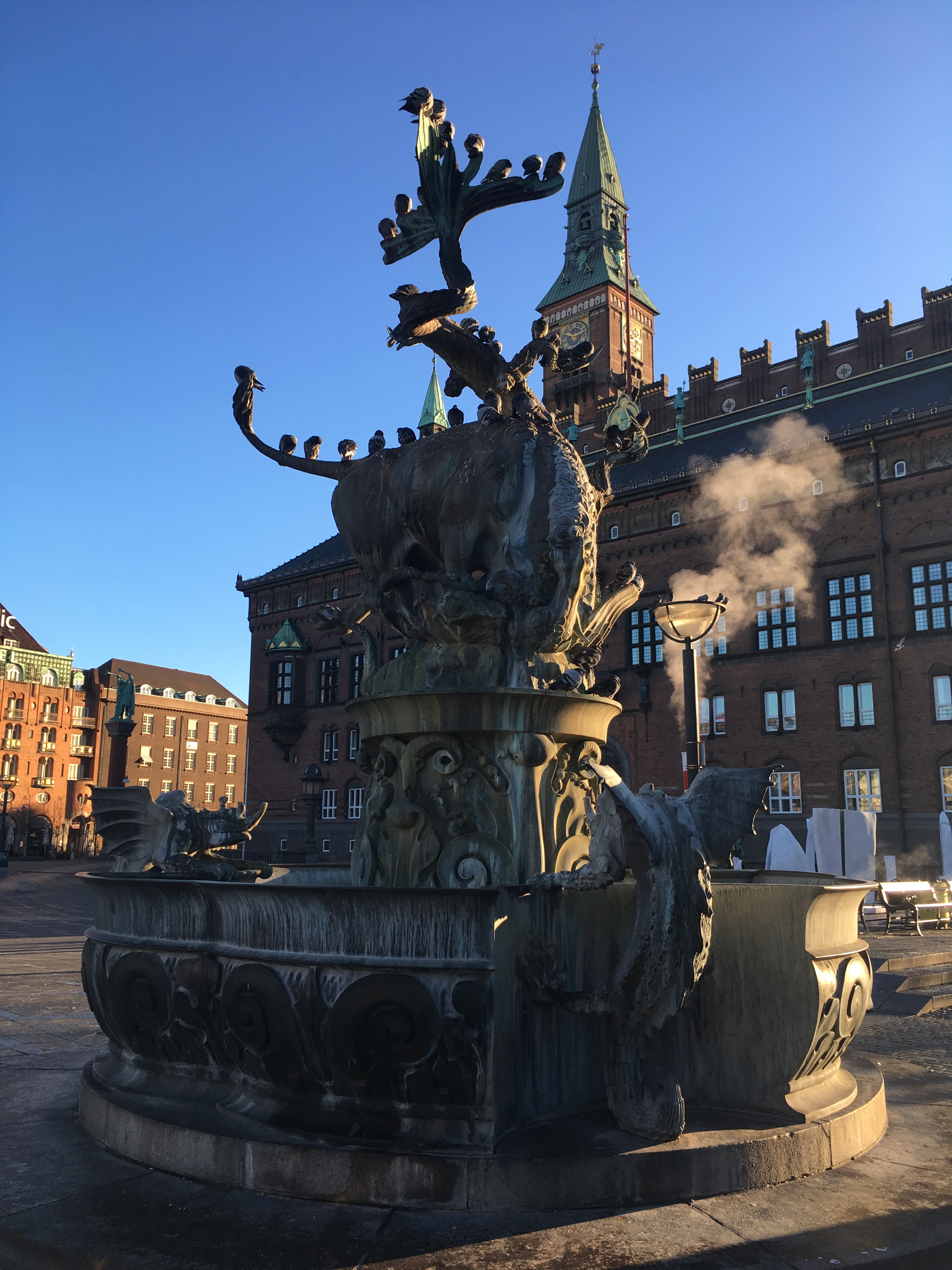 Описывать впечатления от самого города сейчас не имеет смысла – за пять лет он сам вряд ли сильно поменялся, да и я просто не помню, что же я тогда думал. Поэтому фотографии скажут всё за меня. Меня больше удивляла погода: в первый день солнце так и не выглянуло, а день тут был чрезвычайно короткий. Хоть я и побежал осматривать вокзал, площадь и центральные улочки старого города в восемь утра, сразу после обеда уже начало темнеть – фотографии некоторых главных достопримечательностей, вроде королевского замка Кристианборга, в итоге вышли мрачноватыми, но зато передавали атмосферу старых датских сказок. Теперь я понимаю, почему у Андерсона были такие ужасающие истории для детей – нехватка витамина D сказывалась.