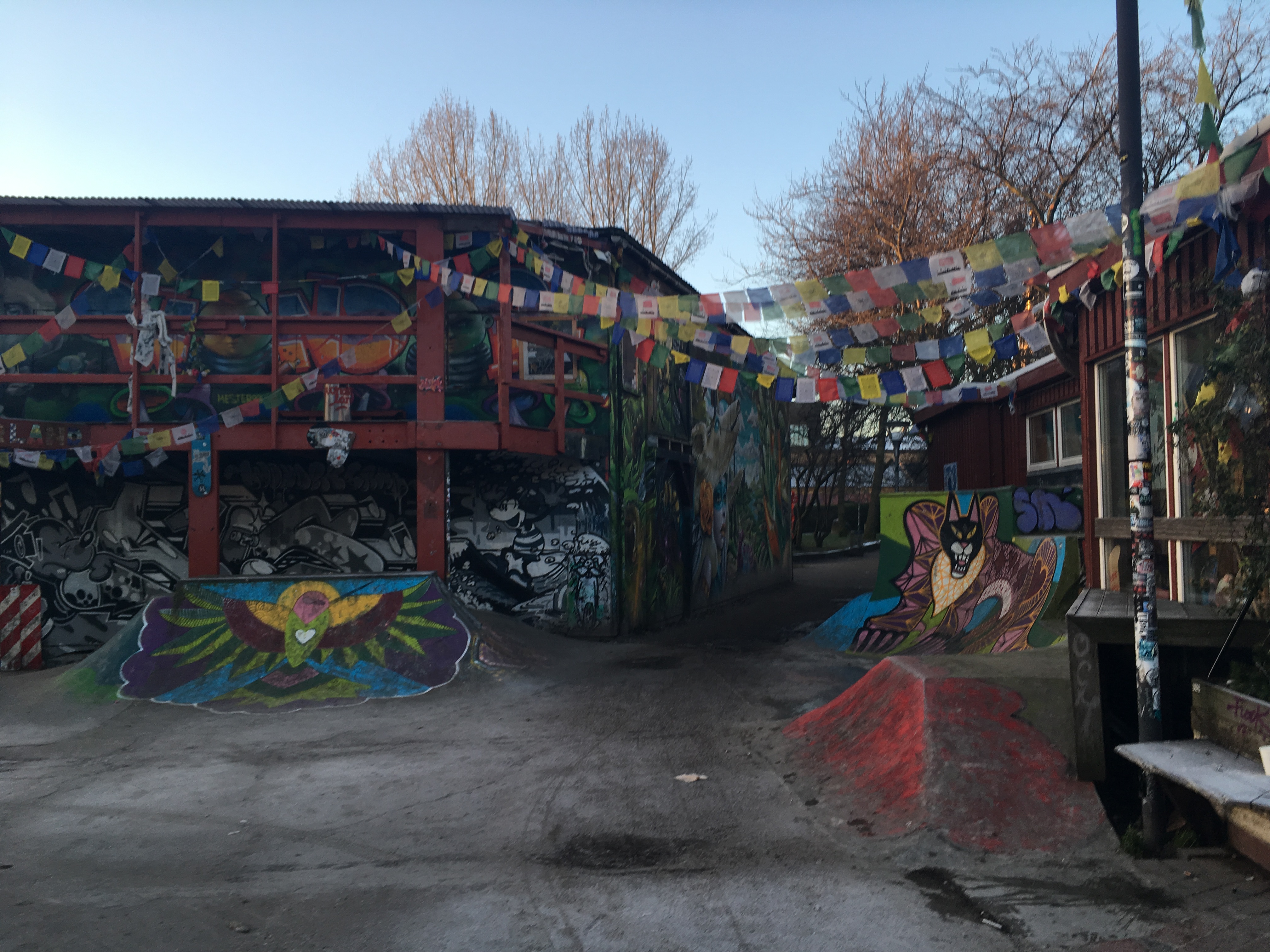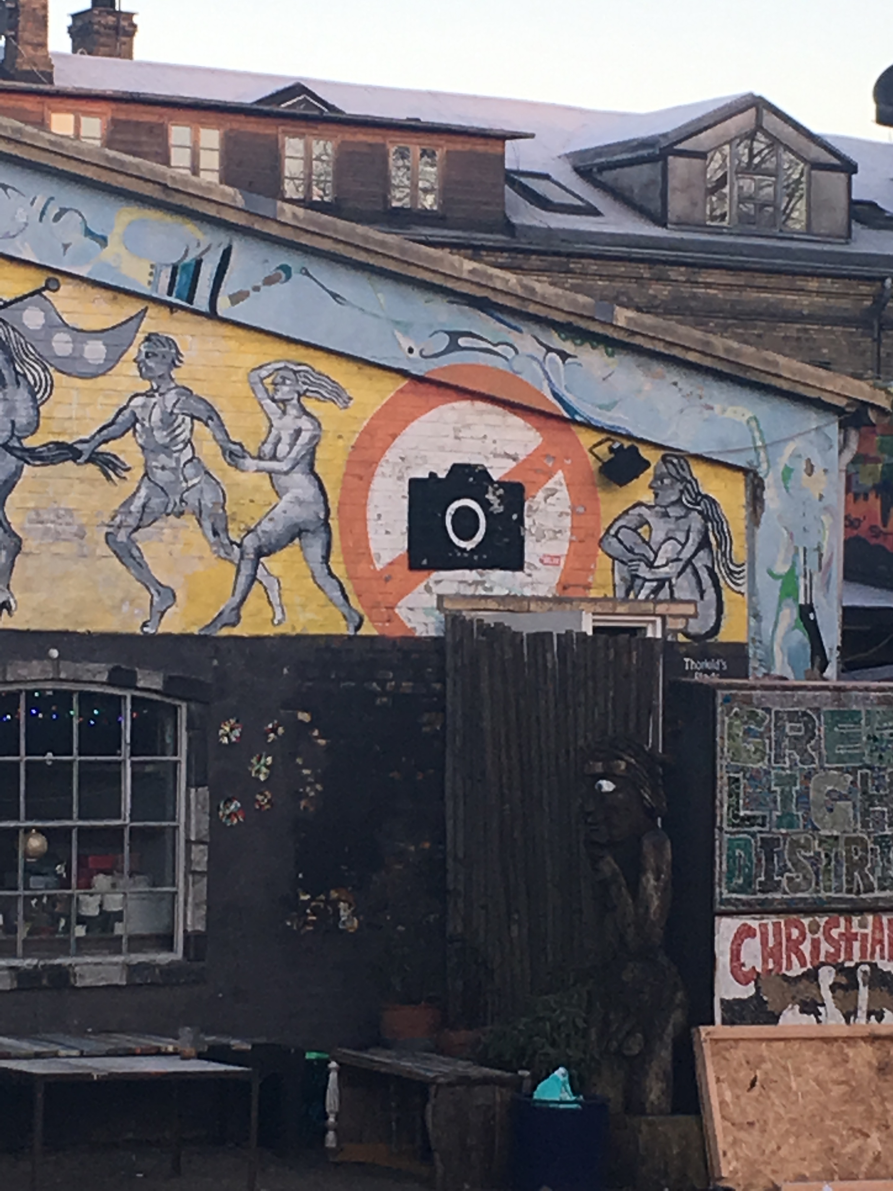 А перед вылетом на третье утро я успел сбегать в Кристианию. Правда, до того, как она открылась, поэтому я смотрел на все эти раскрашенные хижины с закрытыми окнами и тайно фотографировал знаки «не фотографировать». Атмосфера была странной – это немного независимый район города, в котором царят свои законы. Тут даже произошёл легалайз, но мне предстояло лететь в целую страну с таким правилом (дальше я двигался в Нидерланды), поэтому я не сильно огорчился, что не смог посмотреть на очереди туристов за джойнтами.